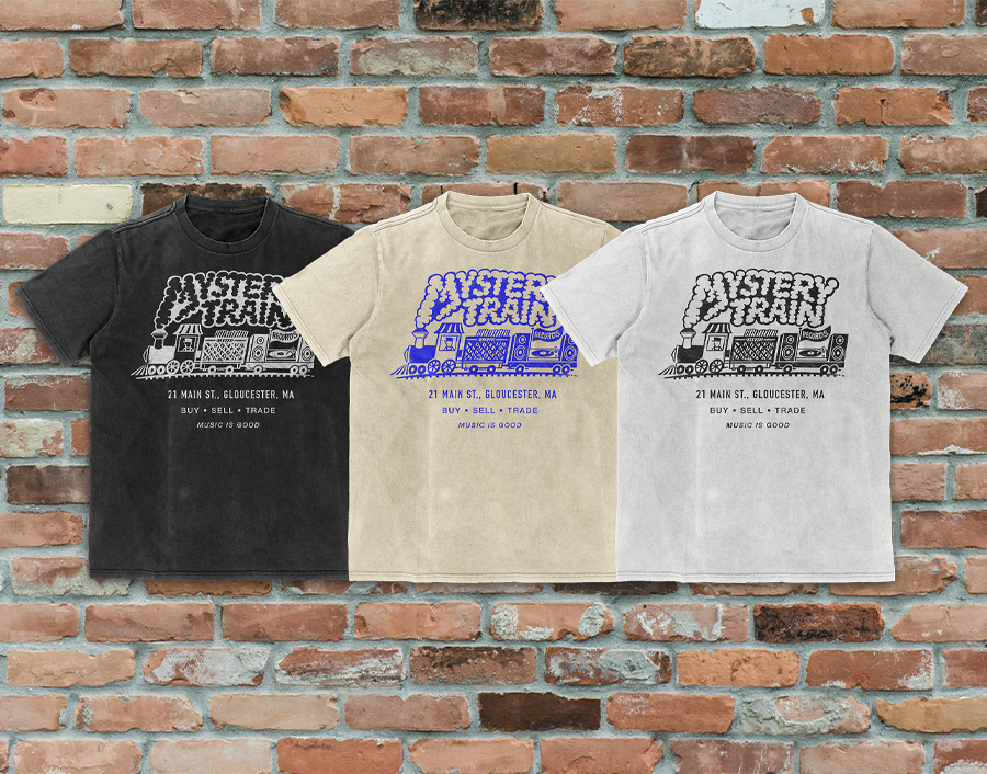 Concept t-shirt design inspired by Mystery Train Records in Gloucester, Massachusetts.